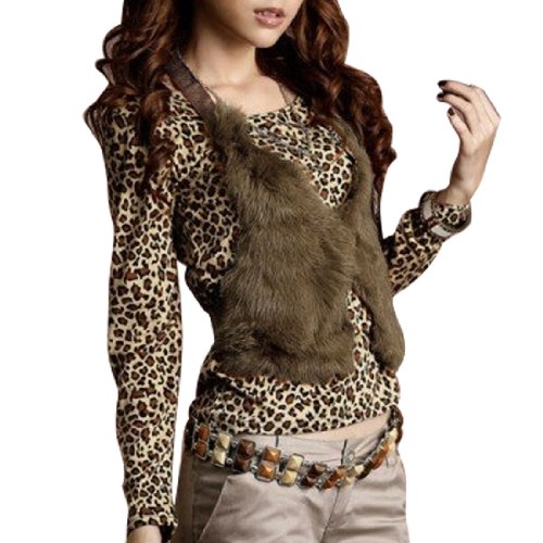 Shirt: Round Neck, Long Sleeve, Leopard Print, Stretchy, Autumn Primer Shirt.Vest: Deep V Neck, Sleeveless, Self Tie Strap Back, Halter Strap, Plush Material Vest.We also sell other other shirt and vest in this style.The Model in out picture is about 5.3ft tall.Women Shirt w Vest ONLY, other accessories photographed not included.Please check your measurements to make sure the item fits for you before ordering.