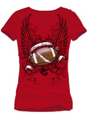 Show support for your favorite teams and sports by wearing Katydid Peace, Love, Football T-Shirts! Shirts feature football design with rhinestone accents.