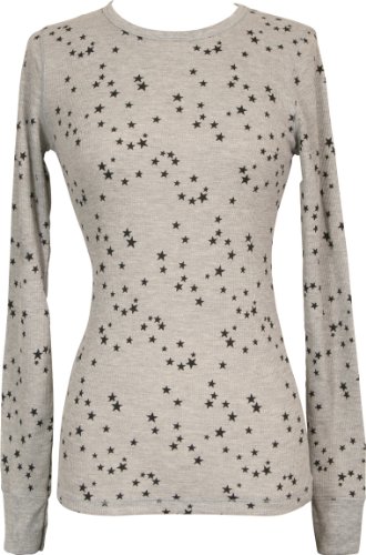 Soft cotton light fitted waffle-knit pullover with cute black stars print. Great lounge, active or layering shirt.