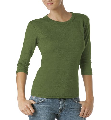 Perfect for laying, this most versatile classic is made in our signature Shine fabric which offers a soft, subtle sheen. Features a crew neckline with 1" banding and a 3/4th sleeve length.