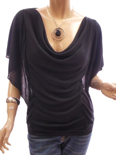 - Patty Women Unique Drapes Front Cowl Neck 3/4 Sleeve Blouse Top
