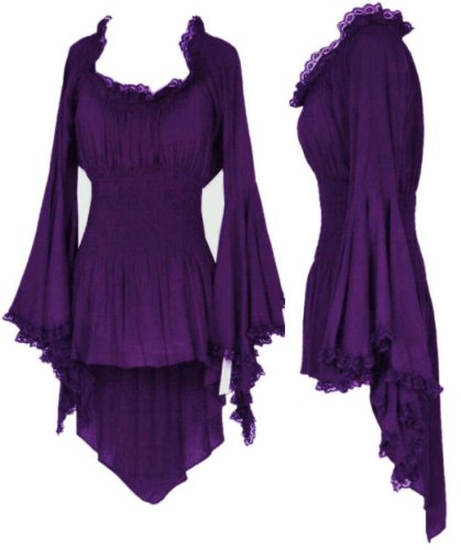 Constructed of a wonderful light crinkle rayon, this top is cool to wear. The neckline and cuffs of the extra long trumpet sleeves are embellished with sheer lace, while smocking celebrates your curves at the midriff and stretches wonderfully to move gently with your body. The neckline is designed for either on or off the shoulders. Perfect for our gothic girls or if you're going for a hippy look. (Size Specs: XL Hips: 50" 1X Hips: 54". 2X Hips: 58" 3X Hips: 62". 4X Hips: 64" 5X Hips: 68". 6X Hips: 72".) Fabric Care: 100% Rayon, Wash on gentle in cold water; hang dry. IMPORTANT NOTES ABOUT COLORS OF TOPS: Please Note That The Color Of The Green Top Is A Teal Green. Hang Tag Will Read Hunter Green; However, We Believe It Is More Teal Than Hunter Green Due To The Blue Hue. The Color of The Red Top Is Not A True Red, But More Of A Brick Red. BBW Boutique's sizing is based first on BUST SIZE: 1X - 48-50"; 2X - 52-54"; 3X- 56-58"; 4X - 60-62"; 5X - 64-66"; 6X - 68-70"; 7X - 72-74"; 8X 76-78" In order for a great fit, please follow these measuring guidelines prior to placing your order: First, use a top or dress from your own closet for which the fit is perfect for you. Lay your top or dress out flat. Measure loosely across from armpit to armpit and double that measurement. This is your "Bust" measurement.If you are taking your actual bust measurement instead of measuring a garment, we generally recommend that you add 4" to your actual measurement. For example, if your bust measures around 50", you add 4" which would place your bust at 54". 8" below your bust measurement is your "waist". 9" below your waist measurement is your hips; or 17" from your armpit is your "hip" measurement. We provide you with approximate measurements of our items which you should look at before ordering your item. Again, we cannot stress enough that you order based on measuring, not on what you normally purchase from other clothing merchants. Please email us if you have sizing questions.