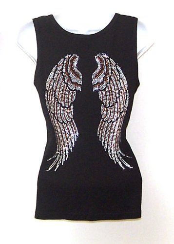 ANGEL WING RHINESTONE BLACK WOMENS TANK TOP AWESOME Beautiful ONE AND ONLY KIND, SPARKLING CRYSTAL RHINESTONE BLACK WOMENS TOP CUTE ! CUTE ! CUTE ! GUARANTEED COMPLIMENTS !!!! TONS THOUSAND OF CRYSTAL & BROWN, BLACK RHINESTONES FIT TO STRETCH STYLE TANK 100% COTTON NO DESIGN PLAIN FRONT SIZE AVAILABLE MEDIUM-2XL PLEASE CONTACT US OR EMAIL FOR YOUR SIZE