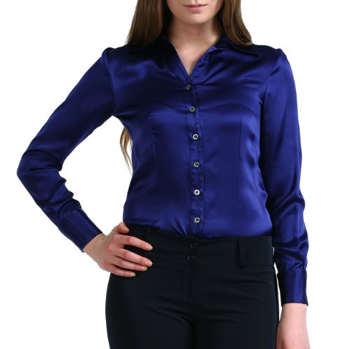 - Sandals Cay Women's Classic Long Sleeve Satin Silk Blouse in Lavender or Maroon